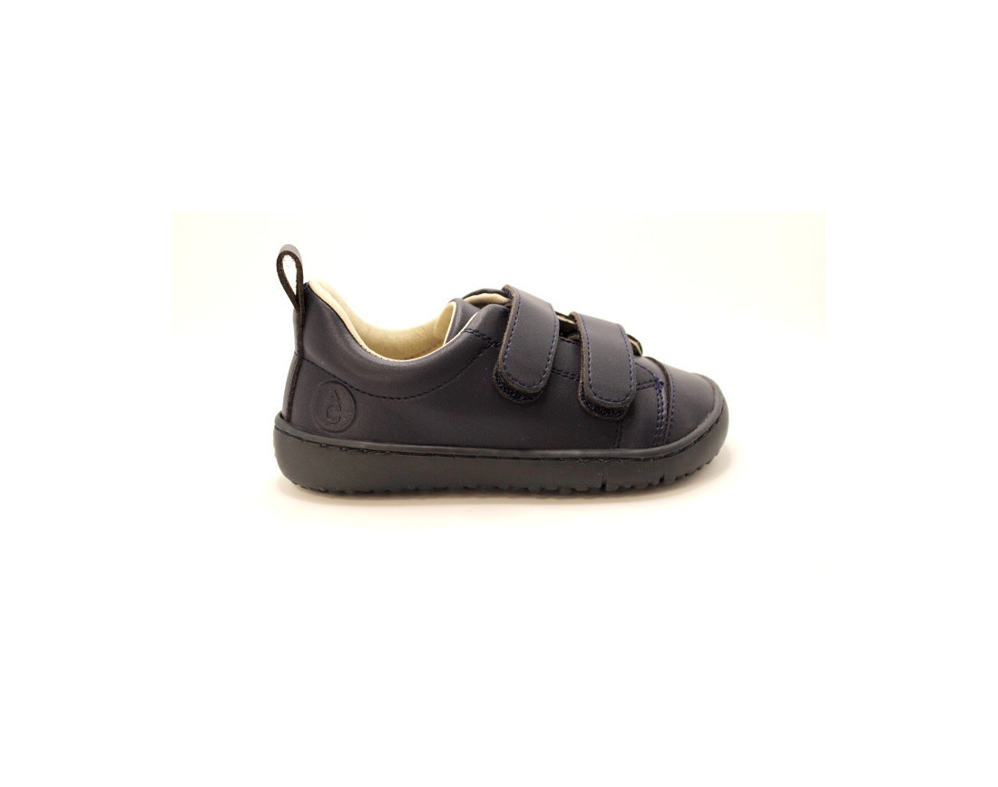 Zapato colegial respetuoso para niño, disponible en negro o marino. Cómodo, resistente y flexible, ideal para el uso diario y el desarrollo natural del pie.